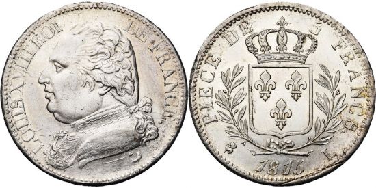 | − | * [[France 1815-L 20 francs Fr-526|1815-L 20 francs Louis XVIII]] | + | * [[France 1815-Q 5 francs Dav-85|1815-Q 5 francs, "Hundred Days"]] |