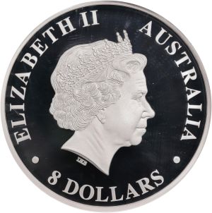 This specimen was lot 33036 in Stack's Bowers Collector's Choice sale (Costa Mesa, CA, May 2024), where it sold for $192. The catalog description[1] noted, "AUSTRALIA. 8 Dollars, 2012-P. Perth Mint. Elizabeth II. NGC PROOF-70 Ultra Cameo. A stunning Koala, this appealing silver bullion issue delivers good eye appeal and much charm." This koala series had a different reverse for each year.