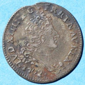 | + | * [[France 1702-E 1/12 ecu|1702-E ''douzième d'écu aux insignes'']] | ||