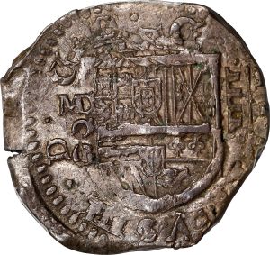 This specimen was lot 72236 in Stack's Bowers Collectors Choice sale (Costa Mesa, CA, November 2022), where it sold for $720. The catalog description[1] noted, "SPAIN. Cob 4 Reales, 1620-MD Go. Madrid Mint. Philip III. PCGS AU-58. A deeply toned and well-preserved 4 Reales piece from Madrid. The obverse offers a clear denomination, mintmark, assayer, and ordinal. The reverse is well-centered but somewhat weakly struck, displaying the crucial final digit of the date. A nice piece with very light handling and satisfying detail. From the Pat Johnson Collection." This type was struck at Madrid 1615 and 1620-21 only and is very scarce. Other mints striking four reales during the reign of Philip II include Valladolid, Granada, Segovia, Seville and Toledo.