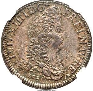 * [[France 1691-P ecu|1691-P ''écu aux huit L'']] | * [[France 1691-P ecu|1691-P ''écu aux huit L'']] | ||