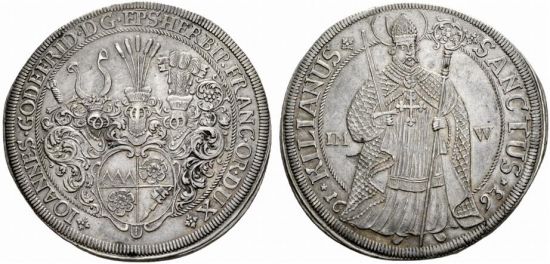 [[Image:Wurzburg 1693 thaler Sincona 11-1029.jpg|550px|thumb|Sincona sale 11, lot 1029]] | [[Image:Wurzburg 1693 thaler Sincona 11-1029.jpg|550px|thumb|Sincona sale 11, lot 1029]] | ||