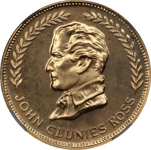 This specimen was lot 33475 in Stack's Bowers Collector's Choice sale (Costa Mesa, CA, May 2024), where it sold for $576. The catalog description[1] noted, "KEELING COCOS ISLANDS. 150 Rupees, 1977. John Clunies Ross. NGC MS-68. A nearly-flawless example, delivering good details and charming details throughout." The SCWC comments, "The entire issue of X#10 was stolen with only 290 pieces being recovered." That may explain why this issue is consigned to the Unusual World Coins. John Clunies-Ross (1786-1854) established a coconut plantation there and his family ruled the islands as private property until the 1970's. The islands are now governed by Australia.