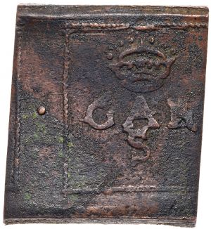 This specimen was lot 4441 in Goldberg sale 104 (Los Angeles, June 2018), where it sold for $630. The catalog description[1] noted, "Sweden. 2 Ore, 1626. Copper. Square planchet. Gustaf II Adolphus, 1611-1632. Crown above G A R, S below. Reverse: Sheaf, value and date. Fine." In the late seventeenth century, the Swedish mints oscillated between striking this denomination in copper (shown here) and billon (KM 241). This type was struck at 1625-27 at Säter and Nyköping and is very scarce. Eight öre made a mark.