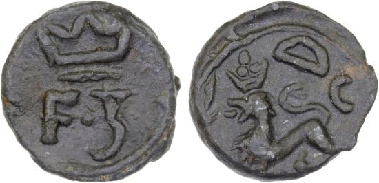 - Tranquebar (1648-70) cash KM-83, F3/crowned lion and "I"