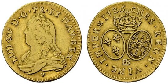[[Image:France 1726BB louis S18-2176q00.jpg|550px|thumb|Sincona sale 18, lot 2176]] | [[Image:France 1726BB louis S18-2176q00.jpg|550px|thumb|Sincona sale 18, lot 2176]] | ||