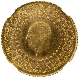 − | This specimen was lot 1529 in Stephen Album sale 41 (Santa Rosa, CA, September 2021), where it sold for $288. The catalog description<sup>[1]</sup> noted, "[[Turkey|TURKEY]]: AV 50 kurush, 1968, NGC graded MS64." This ''monnaie de luxe'' was struck 1942- | + | This specimen was lot 1529 in Stephen Album sale 41 (Santa Rosa, CA, September 2021), where it sold for $288. The catalog description<sup>[1]</sup> noted, "[[Turkey|TURKEY]]: AV 50 kurush, 1968, NGC graded MS64." This ''monnaie de luxe'' was struck 1942-2021 for use in jewelry. It is wider and thinner than the [[Turkey 1923(49) 50 kurush|fifty kurush]] struck for bullion. It is not known circulated. |
