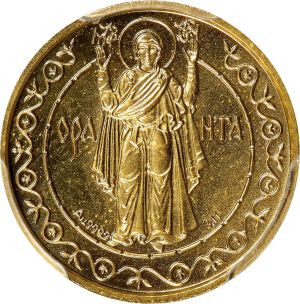 This specimen was lot 75757 in Stack's Bowers Collectors Choice sale (Costa Mesa, CA, November 2022), where it sold for $720. The catalog description[1] noted, "UKRAINE. 50 Hryven, 1996. PCGS MS-68. Celebrating the St. Sophia Cathedral in Kiev. Of exceptional quality." The coinage of this state appears to be almost exclusively NCLT's.