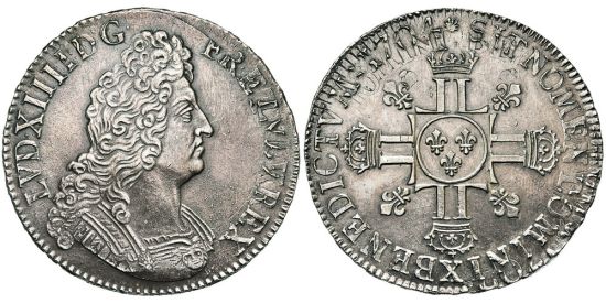 * [[France 1704-I 1/2 ecu|1704-I ''demi-écu aux huit L'']] | * [[France 1704-I 1/2 ecu|1704-I ''demi-écu aux huit L'']] | ||