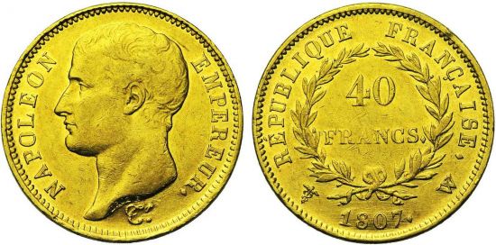 − | * [[France 1807-M 40 Francs|1807-M 40 francs | + | * [[France 1807-M 40 Francs|1807-M 40 francs]] |