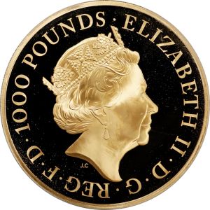 * [[Great Britain 2021 1000 pounds Fr-623|2021 1000 pounds, the Queen's Beasts: The Griffin of Edward III, 1 kg gold]] | * [[Great Britain 2021 1000 pounds Fr-623|2021 1000 pounds, the Queen's Beasts: The Griffin of Edward III, 1 kg gold]] | ||