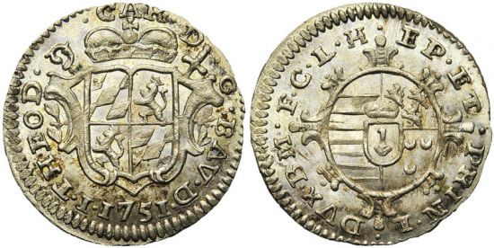 The SCWC does not give the face value of this type struck 1751-52 but, assuming it is good silver and based on the reported weight, it appears to be one twelfth of a patagon or four sols. This is the only issue of this denomination, the escalin or six sols being more usually struck. The bishopric of Liège was an enclave within and surrounded by the Austrian Netherlands and was invaded and annexed by revolutionary France in 1795. It is now part of Belgium.