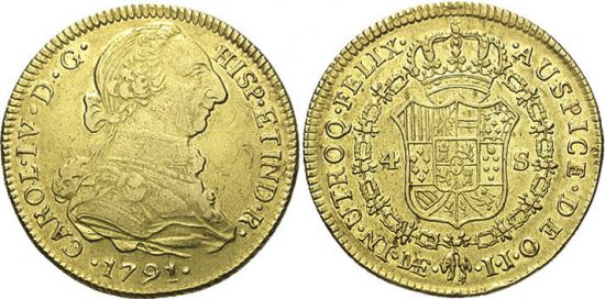 Difference between revisions of "Peru 1791-L IJ 4 escudos"