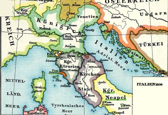 This coin was struck in Milan for Napoleon's kingdom of Italy which lasted 1804-1814. The two lire piece matched the French two francs and was struck in some numbers 1807-14. The silver five lire was also struck in Milan, Venice and Bologna.
