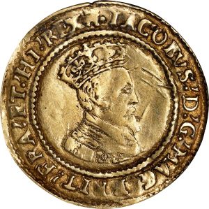 This specimen was lot 51023 in Stack's Bowers ANA sale (Pittsburgh, PA, August 2023), where it sold for $900. The catalog description[1] noted, "GREAT BRITAIN. Crown (5 Shillings), ND (1612-13). London Mint; mm: Tower. James I. NGC VF-25. Second coinage, third crowned bust. Obverse: Crowned and mantled bust right; Reverse: Crowned coat-of-arms. Seemingly a bit conservatively graded, this wholesome specimen yields a delightful golden-yellow appearance with some enticing contrast among the devices. From the Augustana Collection." This gold crown of James' second issue was accompanied by a rose ryal (Fr-230), angel, unite (Fr-234), spur ryal (Fr-231), double crown (Fr-235), half angel (Fr-233) and half crown (Fr-237). With the accession of James I we drop "England" as the country name and adopt the current "Great Britain."