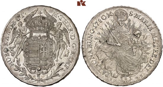 "RÖMISCH-DEUTSCHES REICH, Maria Theresia, 1740-1780. Konv.-Taler 1780, B/SK-PD, Kremnitz. Attraktives Exemplar, vorzüglich. (Holy Roman Empire, Maria Theresia, convention thaler of 1780, Kremnitz mint. Attractive example, extremely fine.)"