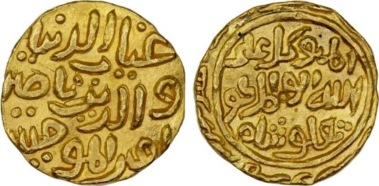 This specimen was lot 537 in Stephen Album sale 50 (Santa Rosa, CA, September 2024), where it sold for $1,140. The catalog description[1] noted, "DELHI: Ghiyath al-Din Tughluq I, 1320-1325, AV tanka, Mulk-i Tilang, AH(7)25, mint & date barely visible but sufficient to confirm Mulk-i Tilang (today's Telangana) and the date, XF." The sultans of Delhi struck an extensive series of gold coins (Fr-402 thru Fr-502) starting about AH 589 (1193 AD). Most of the rulers had very short tenures but Mohammad III survived twenty-six years (AH 725-752).