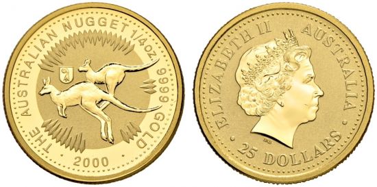 - 1995 25 dollars, kangaroo, ¼ oz gold