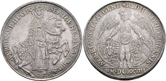 − | This specimen was lot 1058 in Sincona sale 90 ( | + | This specimen was lot 1058 in Sincona sale 90 (Zürich, May 2024), where it sold for 8,500 CHF (about US$11,232 including buyer's fees). The catalog description<sup>[1]</sup> noted, <blockquote>"''DEUTSCHLAND Nürnberg, Stadt, Taler 1628, Nürnberg. Abschlag von den Stempeln des Doppeltalers. Von grösster Seltenheit als einfacher Taler. Fast vorzüglich. Sammlerpunze im Rand auf 12 Uhr.'' ([[Germany]], [[German States, Nurnberg|city of Nuremberg]], thaler of 1628, Nuremberg mint, struck using double thaler dies. Of the highest rarity in the weight of a single taler, About extremely fine, Collector's hallmark on edge at 12 o'clock.)"</blockquote> This is the rarest of the five thalers issued by the city in 1628: [[Nurnberg 1625 thaler Dav-5636|KM 52/Dav-5636]], KM 71/Dav-5637, KM 83/Dav-5640 (shown here), [[Nurnberg 1628 thaler Dav-5641|KM 87/Dav-5641]] and [[Nurnberg 1628 thaler Dav-5642|KM 88/Dav-5642]]. |