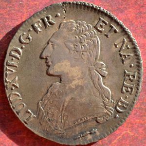 This specimen is an écu au buste habillé struck at the Pau mint, one of a type struck there for France 1775-91. Its divisions were the ½, 1/5, 1/10 and 1/20 écu, struck in modest quantities. The écu was worth $1.10 in the USA before the Civil War. The écu au buste habillé is the most popular coin of Louis XVI among collectors. The 1786-Pau is listed[2] about 25% higher than the most common date (1789-A) but it is a common date.