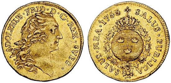 Difference between revisions of "Sweden 1755 1/4 ducat Fr-71"