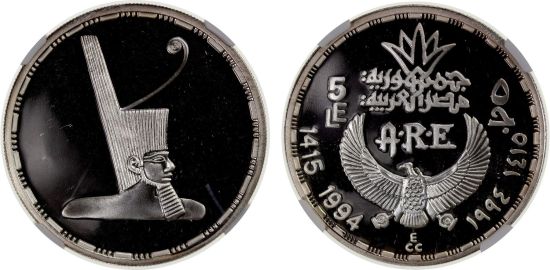 * [[Egypt 1994 5 pounds KM-783|AH 1415/1994 5 pounds, Queen Nefertiti bust]] | * [[Egypt 1994 5 pounds KM-783|AH 1415/1994 5 pounds, Queen Nefertiti bust]] |