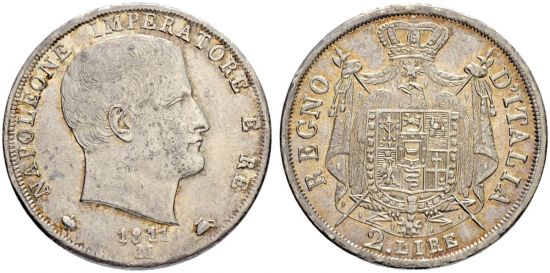 "ITALIEN, Königreich, Napoleone I. 1805-1814. 2 Lire 1811 M, Mailand. Vorzüglich. (kingdom of Italy, Napoleon I, 1805-14, two lire of 1811, Milan mint. Extremely fine.)"