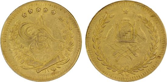 This specimen was lot 1444 in Stephen Album sale 50 (Santa Rosa, CA, September 2024), where it sold for $390. The catalog description[1] noted, "AFGHANISTAN: Abdur Rahman, 1880-1901, AV tilla, NM (struck at Kabul), AH1316, toughra within wreath, with his title diya' al-milla wa'l-din // mosque above crossed swords, date below, AU, R, ex Hakim Hamidi Collection." Milled coinage was introduced to Afghanistan during the reign of Abdur Rahman (1880-1901). This type was struck AH 1316 only. It is not believed to exist in uncirculated condition.