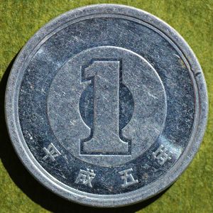This specimen was struck for Japan by the Tokyo mint, which issued this type 1989-2019. It was issued in collector sets only for years 2009-13 and 2016-19. The aluminum yen was introduced in 1955 as part of Macarthur's currency reform of 1948, which dropped all denominations under one yen. A similar type was issued under Hirohito's name in immense quantities.