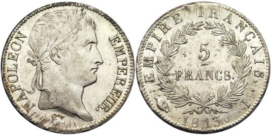 * [[France 1813-T 5 francs|1813-T 5 francs]] | * [[France 1813-T 5 francs|1813-T 5 francs]] | ||