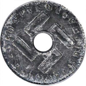 * [[Germany 1940-F 10 pfennig KM-99|1940-F 10 pfennig, occupation issue]] | * [[Germany 1940-F 10 pfennig KM-99|1940-F 10 pfennig, occupation issue]] | ||