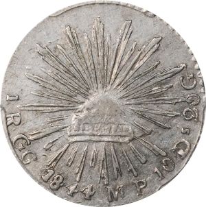 This specimen was lot 39274 in Stack's Bowers NYINC sale (New York, January 2025), where it sold for $1,680. The catalog description[1] noted, "MEXICO. Real, 1844-GC MP. Guadalupe y Calvo Mint. PCGS AU-50." The specimen shown is one of a series struck 1844-52 at the Guadalupe y Calvo mint. That mint struck all the silver and gold denominations used during the republic, from the quarter real to the eight escudos. None are common, tho the gold tends to appear more often than the silver.