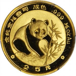 This specimen was part of lot 40094 in Stack's Bowers NYINC sale (New York, January 2019), which sold for $2,640. The catalog description[1] noted, "CHINA. Five Piece Proof Set, 1988-P. Panda Series. PCGS PROOF 68 & 69 DEEP CAMEO Gold Shield. Includes: 5 to 100 Yuan. A very attractive set of Panda coins, each marked with a 'P' inside the frosted design to designate them as Proof strikings." The Chinese government has, since the mid 1980's, produced a mind boggling array of bullion related collectibles. A complete set is thousands of types yet buyers clamor for more. The gold panda set includes 1/20 ounce, 1/10 ounce, quarter ounce, half ounce and one ounce.