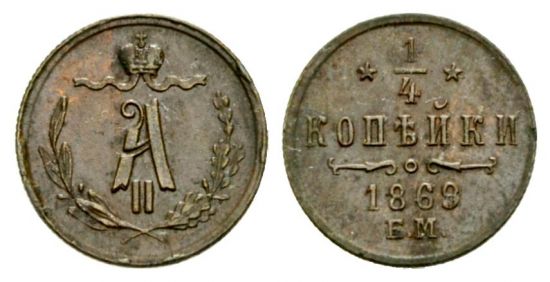 Difference between revisions of "Russia 1869-EM 1/4 kopek"