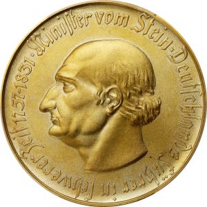 This specimen was lot 75148 in Stack's Bowers Collectors Choice Online Auction (Costa Mesa, CA, February 2025), where it sold for $3,360. The catalog description[1] noted, "GERMANY. Weimar Republic. "Province of Westphalia". Tombac Billion Mark Notgeld, 1923. PCGS MS-65. Fairly RARE and enchanting, with a pleasing matte nature throughout." This is the highest denomination of a series of tokens issued in 1923, including fifty, 100, 500, 10,000, ¼ million, 2 million, 5 million and 50 million mark. We doubt they were intended to circulate, as they are never found worn. The German billion equals an American trillion.