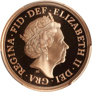 This specimen was lot 46475 in Stack's Bowers ANA sale (Chicago, August 2024), where it sold for $840. The catalog description[1] noted, "GREAT BRITAIN. Soveriegn, 2022. Llantrisant Mint. Elizabeth II. PCGS PROOF-69 Deep Cameo. Commemorating the queen's platinum jubilee for her 70th year of reign, this also serves as a bookend to her sovereign series, as she passed away in September of that year. Extremely vibrant and on the cusp of perfection. Includes original box of issue." The queen died in September, aged 96. This design was also struck in piedfort (double weight, KM 2340a) and with the bust of her successor, Charles III (KM 2341).