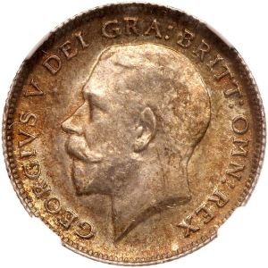This specimen was lot 1930 in Goldberg sale 128 (Los Angeles, June 2022), where it did not sell. The catalog description[1] noted, "Great Britain. 6 Pence, 1912. George V. Toned. NGC graded MS-63." The silver six pence was struck in this fineness until 1920, when it was debased to .500 fine.