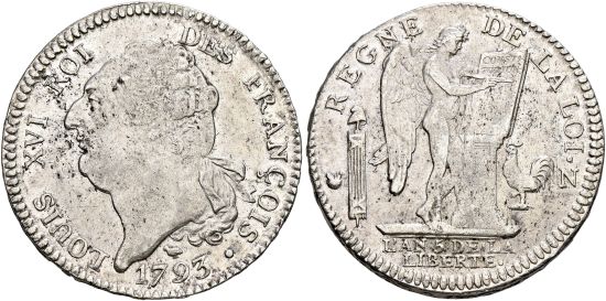 "FRANCE | Kingdom. Constitution, 1791-1793. Ecu de 6 livres 1793.AN 5 N, Montpellier. Gutes sehr schön. (kingdom of France, constitution of 1791-93, écu of six livres of 1793, Montpellier mint. Good very fine.)"
