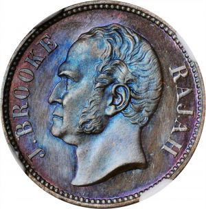 Sarawak, now a part of Malaysia, was once ruled by a dynasty of white rajahs ending with Charles V. Brooke (ruled 1917-46). James Brooke (r. 1841-68) founded the line but his coinage comprises only quarter cents, half cents and cents of 1863. The region was devastated by Japanese occupation during World War Two, so the rajah abdicated in favor of direct British rule.