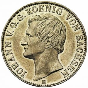 "ALLEMAGNE, SAXE, Johann (1854-1873), AR Vereinstaler, 1861 B, Superbe à Fleur de Coin (kingdom of Saxony, John (1854-73), silver union thaler of 1861, extremely fine to uncirculated.)"