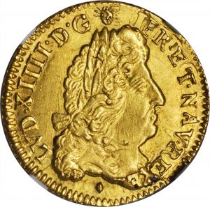 This specimen was lot 20198 in Stack's Bowers 2018 NYINC sale (New York, January 2018), where it sold for $2,640. The catalog description[1] noted, "FRANCE. Louis d'Or, 1690-&. Aix Mint Louis XIV (1643-1715). NGC MS-64. A louis d'or à l'écu of the Aix mint struck over an earlier louis of the Caen mint, probably a louis d'or à la mèche longue. No signs of wear or mishandling although the obverse has plenty of die polish lines. Bold strike with soft satin luster." This type was struck 1690-93 and is the first reasonably common type after the scarce dates of the 1670's and 1680's. Gadoury notes this mint as slightly scarce with none known on new blanks.