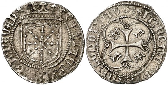 "Fernando I (1512-1515). Navarra. Real. Rara. MBC. (kingdom of Navarre, Ferdinand I, 1512-15, undated real. Rare, very fine.)"