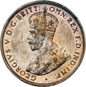 This specimen was lot 1068 in Ponterio sale 173 (New York, January 2013), where it sold for $529. The catalog description[1] noted, "AUSTRALIA. Florin, 1919-M. NGC EF-45. Lightly toned." The silver coinage for Australia commenced in 1910 but bronze pennies and halfpennies were not struck until 1911. As such, none were struck with the effigy of Edward VII. This type was struck 1911-36 at London, Heaton, Sydney and Melbourne. The dates prior to the late twenties are scarce, especially in nice condition. Australia maintained the sterling silver standard until 1945, years after Great Britain had debased her coins to .500 fine.