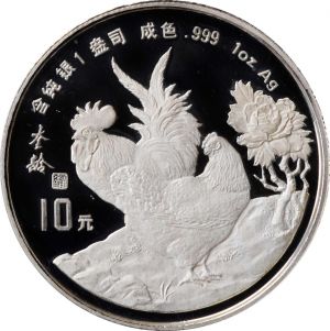 - 1993 50 yuan, 5 oz silver Year of the Rooster