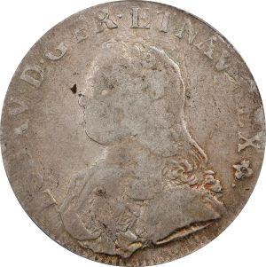 This specimen was lot 73344 in Stack's Bowers Collector's Choice sale (Costa Mesa, CA, November 2023), where it sold for $168. The catalog description[1] noted, "FRANCE. Ecu, 1733-V. Troyes Mint. Louis XV. PCGS VF-25. An elusive mint for the issue as a whole, the present date entirely omitted from KM and seemingly quite RARE, as we are unable to locate another example in public auction records or in the PCGS or NGC population reports. Wholesome and problem-free, with moderate wear." The écu aux branches d'olivier was introduced in 1726 as part of a coinage reform which ended the financial manipulations of the first years of the reign of Louis XV. It was struck in large numbers at all the French mints including Troyes, shown here. The bust was updated in 1740 to become the écu au bandeau but the reverse and the module were not changed. Adjustment marks are common on these.