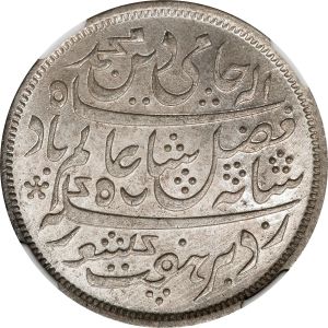 This specimen was lot 42277 in Stack's Bowers NYINC sale (New York, January 2023), where it sold for $528. The catalog description[1] noted, "INDIA. Bengal Presidency. Rupee, 'Year 19' (struck 1793-1818). Calcutta (as "Murshidabad") Mint. In the name of Shah Alam II. NGC MS-65." This type was struck with a frozen date. While the Mughal Empire lasted, the British in Bengal were careful to strike coinage in the emperor's name. Only the coppers showed the arms of the East India Company.