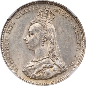 This specimen was lot 74840 in Stack's Bowers Collectors Choice sale (Costa Mesa, CA, September 2024), where it sold for $456. The catalog description[1] noted, "GREAT BRITAIN. Shilling, 1889. London Mint. Victoria. NGC MS-64. Small bust type. Quite enchanting and enticing, this near-Gem minor glistens with an abundance of brilliance and features some subtle golden toning at the peripheries." The Jubilee bust of the queen was introduced in 1887 and received considerable criticism for the tiny crown atop the queen's head. In 1889, the bust was enlarged; both styles exist for the year. The small bust is very scarce, the large bust (KM 774) is common.