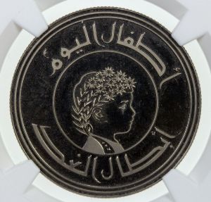 This specimen was lot 3033 in Stephen Album sale 38 (Santa Rosa, CA, September 2020), where it sold for $416.50. The catalog description[1] noted, "IRAQ: Republic, 250 fils, AH1399/1979, International Year of the Child, NGC graded PF66 CAM." This NCLT was accompanied by a silver one dinar (KM 145), a gold fifty dinars (KM 166) and a gold hundred dinars (KM 167).