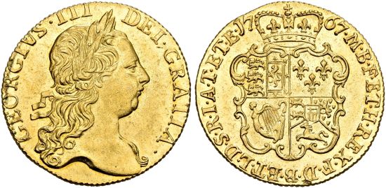 "Grossbritannien | Königreich. George III. 1760-1820. Guinea 1767, London. Third laureate head. NGC MS64. Prachtvolle Erhaltung. (Magnificent condition.)"
