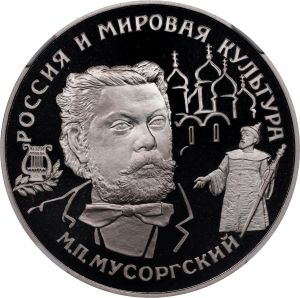 This specimen was lot 75670 in Stack's Bowers Collectors Choice Online Auction (Costa Mesa, CA, October 2024), where it sold for $2,640. The catalog description[1] noted, "RUSSIA. Palladium 25 Rubles, 1993-(L). St. Petersburg (Leningrad) Mint. NGC PROOF-70 Ultra Cameo. Composer M. P. Musorgsky Commemorative. An utterly flawless specimen, bearing fully frosted devices that stand out starkly against a deeply mirrored backdrop." This denomination was used for several NCLT's in 1993 (Y406, Y410, Y417, Y422, Y452, Y517, Y518), some in gold and some in palladium.